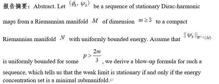 报告题目:Compactness of stationary Dirac-harmonic maps