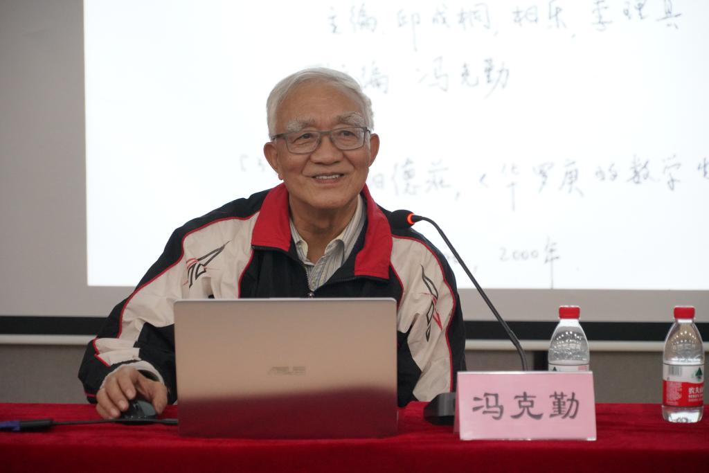 专家报告会上,冯教授做题为《数学大师华罗庚—冯克勤教授回忆做华罗庚研究生的日子》报告。冯教授以华老的成长历程、求学之路、科研工作、人才培养、爱国情怀为主线,对华老生前从事的主要工作和重要贡献进行了归纳。他用简单凝练的语言概述了华罗庚前辈人生的三个阶段:第一个阶段是童年时期,家贫,失学,患重病,腿残疾;第二个阶段是青年时期,痴迷数学,结缘清华,发表多篇高质量论文,出国留学;第三个阶段是中晚年时期,建设新中国的数学教育,遭遇文革,手稿丢失。从这三个人生阶段,大家认识了华罗庚前辈传奇的一生,学习了他矢志不渝的爱国精神、奋斗不息的自强精神、教书育人的人梯精神。冯教授还讲述了很多关于华罗庚前辈学习和生活上的小故事,让在场人员对华老又多了一份崇敬。最后冯教授鼓励大家要能沉下心做学问,作风上不虚夸,转化压力为动力,为中国梦的实现贡献自己的力量。