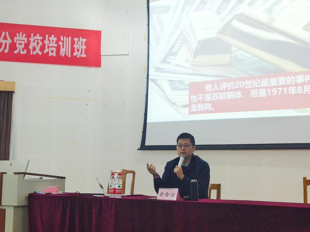 院党委书记俞金波首先作了第一讲《从习近平一带一路看战略思维的重要性》,俞书记从学习十九大、十九届五中全会精神切入,为学员们分析了“一带一路”的战略思维,然后指出战略思维的基本要求,让学员们对党的十九大、十九届五中全会精神及战略思维有了更为深刻的理解,进一步提高了党性修养。在随后几天的党课培训中,院长助理包晓明,学工办主任冯程,团委副书记陈佳雯,马克思主义PG官方直营网