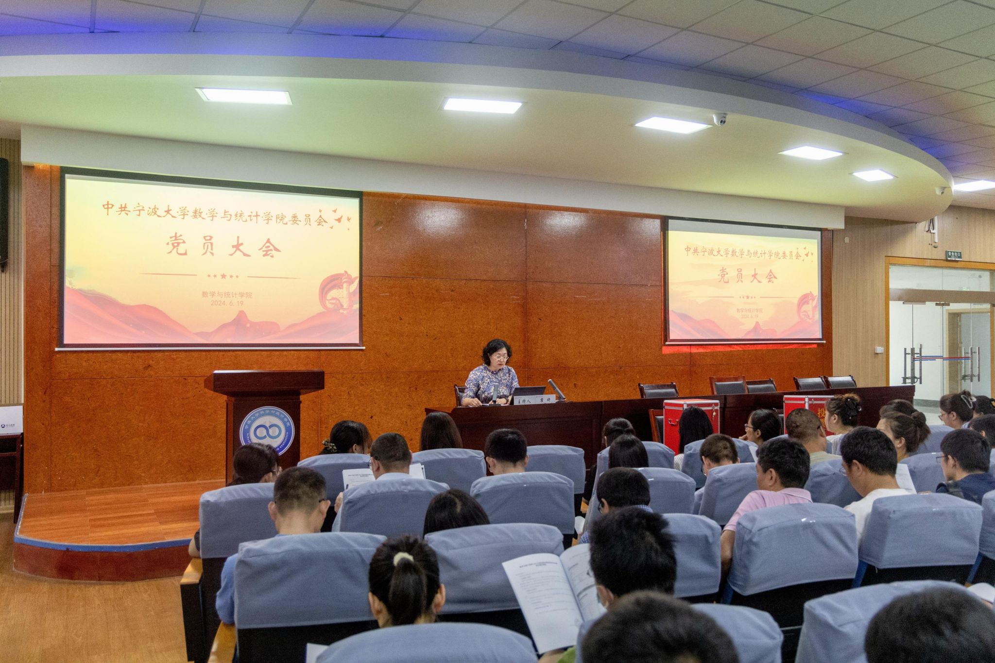 6月19日中午,中共PG官方直营网 数学与统计PG官方直营网 委员会第四次党员大会在包玉书9号楼317报告厅隆重举行。会议由院党委书记霍妍同志主持,PG官方直营网 全体师生党员参加,校考察组陈玉涓同志列席。