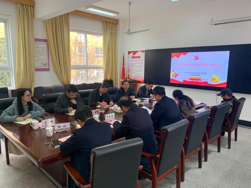1月4日,PG官方直营网 党委班子在龙赛理科楼116会议室召开2020年民主生活会。会议由党委书记俞金波主持,校党委副书记冯杰出席指导,民主党派代表李茂华、教师代表徐松列席会议。会议紧扣学习贯彻党的十九届五中全会精神主线,聚焦科学谋划“十四五”发展蓝图,巩固深化“不忘初心、牢记使命”主题教育成果主题,班子和班子成员分别对照问题检视开展批评和自我批评。
