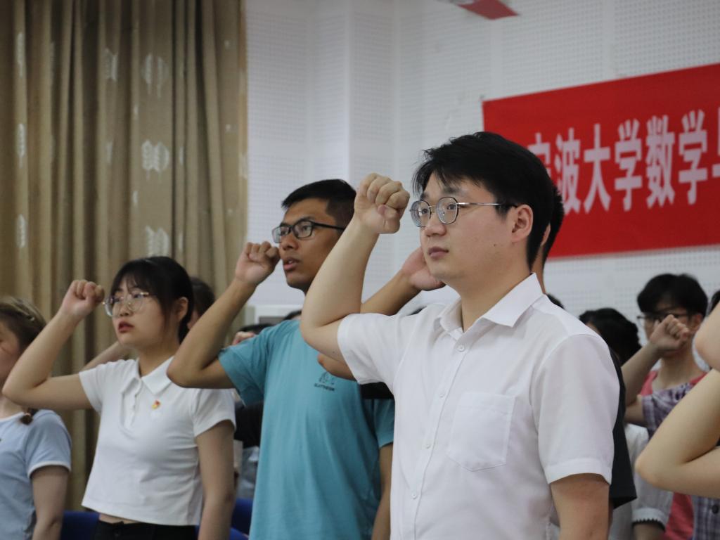 活动在庄严肃穆的国歌中拉开序幕。会议伊始,毕业生党员代表高鹏带领全体到会党员同志在庄严的党徽下宣誓,共同重温了入党誓词。
