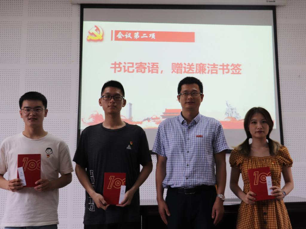 俞金波首先致辞。他强调,毕业生党员要时刻牢记党员身份,毕业不是党员身份的终结,而是重新出发,在新的工作岗位上继续发挥先锋模范作用。他对毕业生党员提出两点希望:一是坚持学习,时刻保持良好的思想状态、工作状态和精神状态,离校后继续秉持良好的学习和工作作风;二是设立目标,对未来有明确规划,用党员的标准严格要求自己。致辞结束后,俞金波为毕业生党员们赠送建党百年纪念笔记本和廉洁书签,寄语毕业生党员廉洁从业,严以律己,带着理想和信念再出发。