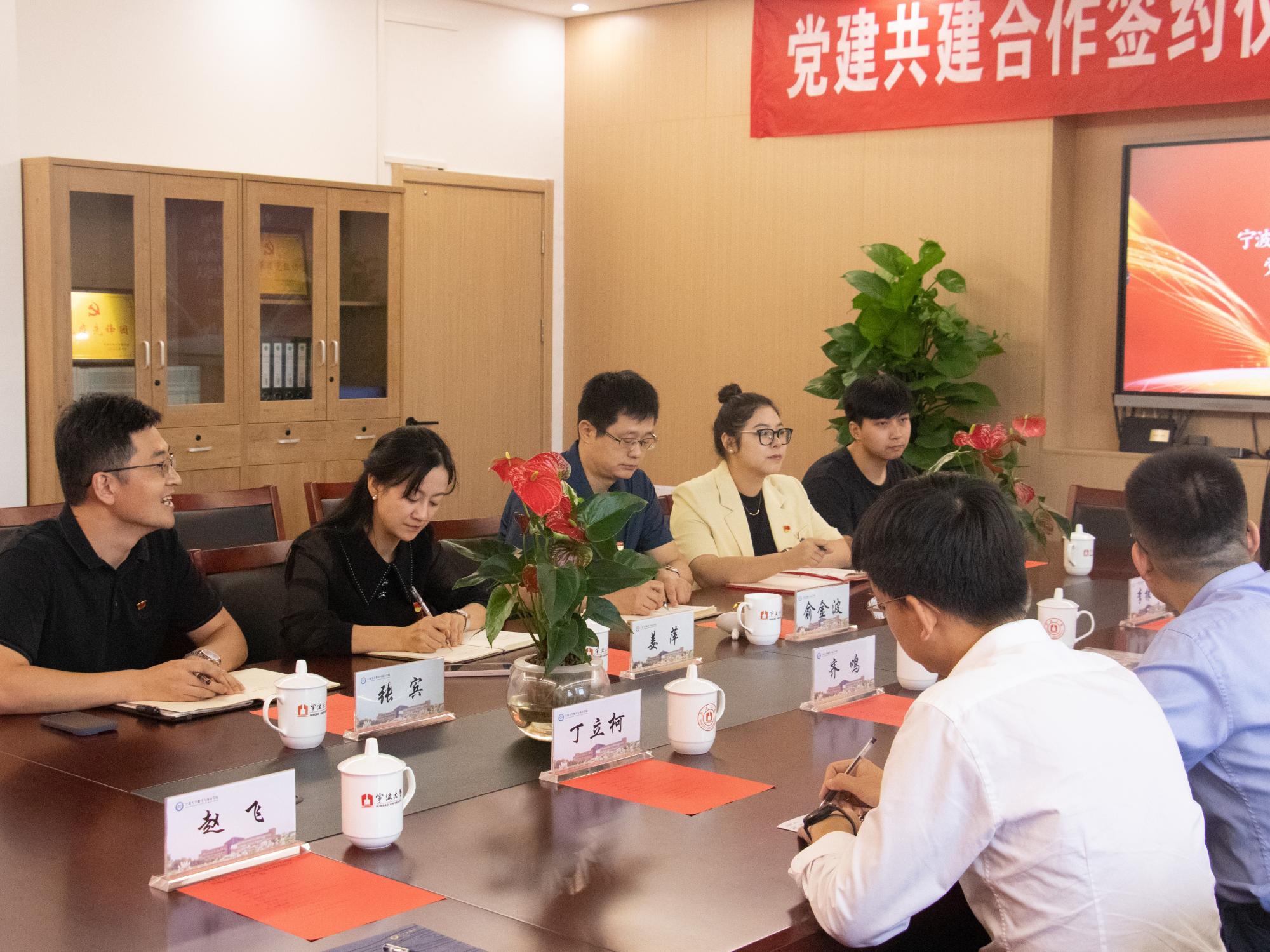 会议首先进行了党建共建签约仪式,俞金波分别与汪蕾、齐鸣共同签署党建共建协议。