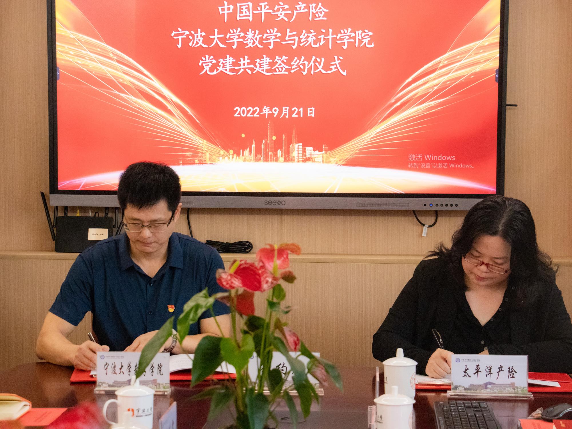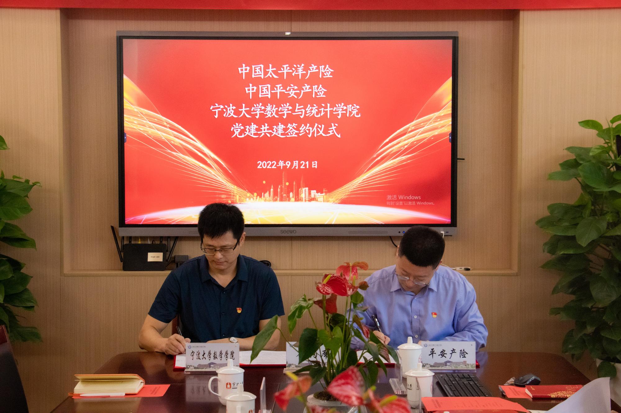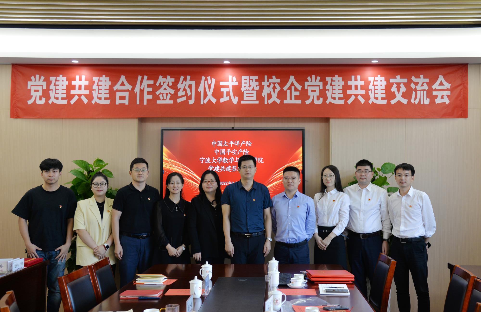 为全面贯彻习近平新时代中国特色社会主义思想,深入落实新时代党的建设总要求,激发高校基层党组织活力,有效整合校企党建资源优势,促使双方在合作中优势互补、共同发展、实现双赢,9月21日上午,PG官方直营网 和太平洋产险、平安产险党建共建签约仪式暨党建共建交流会在包玉书科学楼9号楼218会议室隆重举行。中国太平洋产险宁波分公司党建工作部负责人汪蕾,中国平安产险宁波分公司党委委员、党办主任齐鸣,数学与统计PG官方直营网 党委书记俞金波,党委副书记姜萍等出席此次会议。会议由PG官方直营网 党委委员、学工办主任张宾主持。