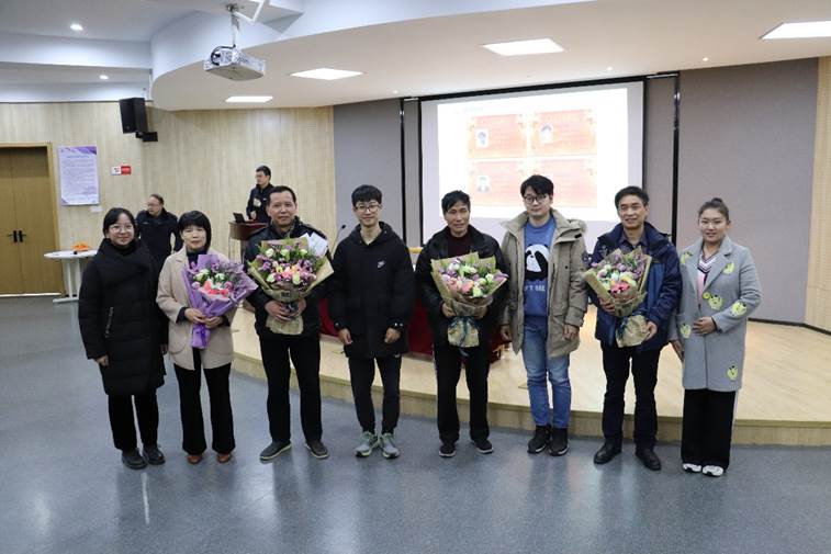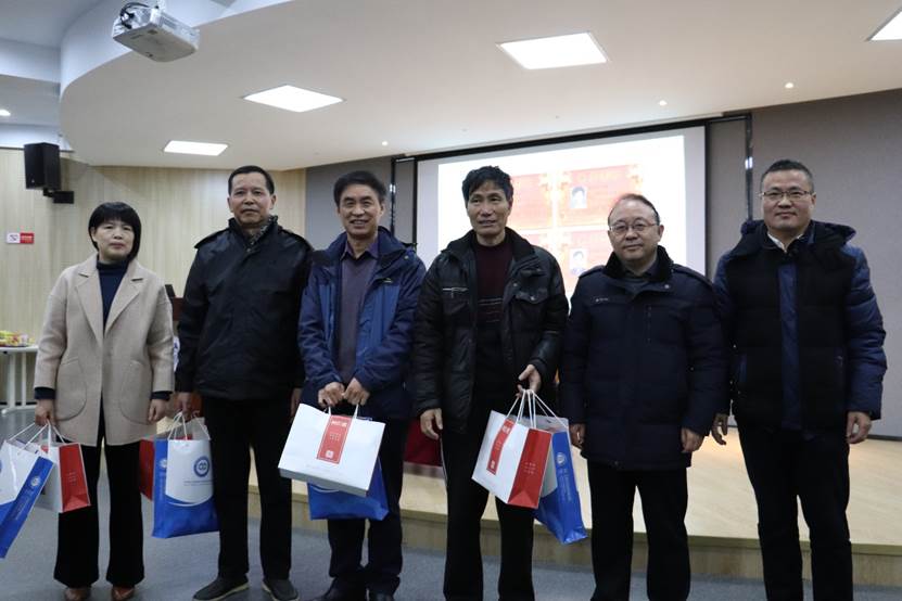领导特聘院长屈长征教授,俞金波书记,与院工会主席王金平教授为四位退休教师赠送了纪念品。