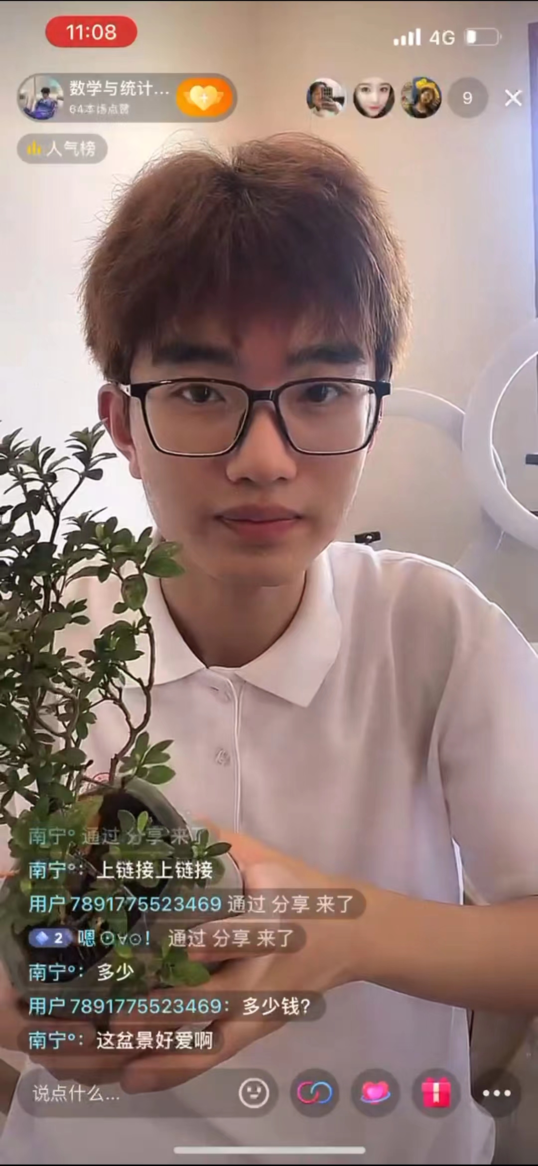 “3,2,1上链接”,闻声望去是周国军带着我们的实践队员开启了抖音直播,“家人们,看我手里这盆小香松,放在书房,客厅都是很好的选择,点击右下角的购物车,即可购买”队员们在指导下将手中的小盆景对准手机的前置摄像头。还不到一分钟这盆小巷香松便被人买下。 电商直播为虹星村集体经济带来源源不断的收入,一颗以盆景为种子长出的“致富果”在这里越尝越甜,一条以盆景为开端的“共富路”在这里越走越远。