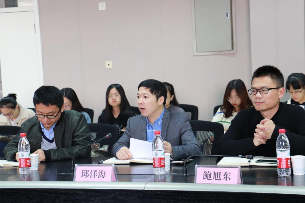 学工办主任邱洋海老师介绍了他们在团组织建设,学科建设,学风建设,创新创业建设等方面的改革举措,并指出学生工作需要围绕PG官方直营网