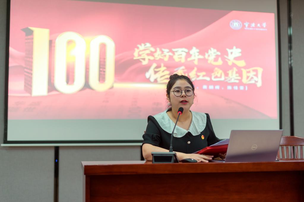团委副书记陈佳雯老师讲述了宁大青年的红色故事。心怀赤诚的宁大青年在跨越时空的90后对话中追寻红色风骨;智慧勇毅的宁大青年奋力开拓社会主义的伟大征程中追寻红色基因;肩负时代使命的宁大青年在全面推进乡村振兴的时代大舞台上展现红色担当。鼓励同学们接过奋斗的红色旗帜,做一名奋进拼搏的宁大青年。