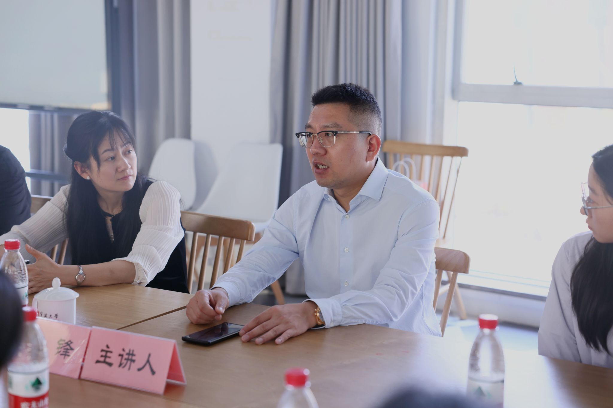 04届校友,宁波和盛达能源技术有限公司执行董事沈锋,向到场的师生们分享了他的成功经验和企业家精神。院党委副书记姜萍、院团委书记孔家辉及20余名学生代表出席座谈会。