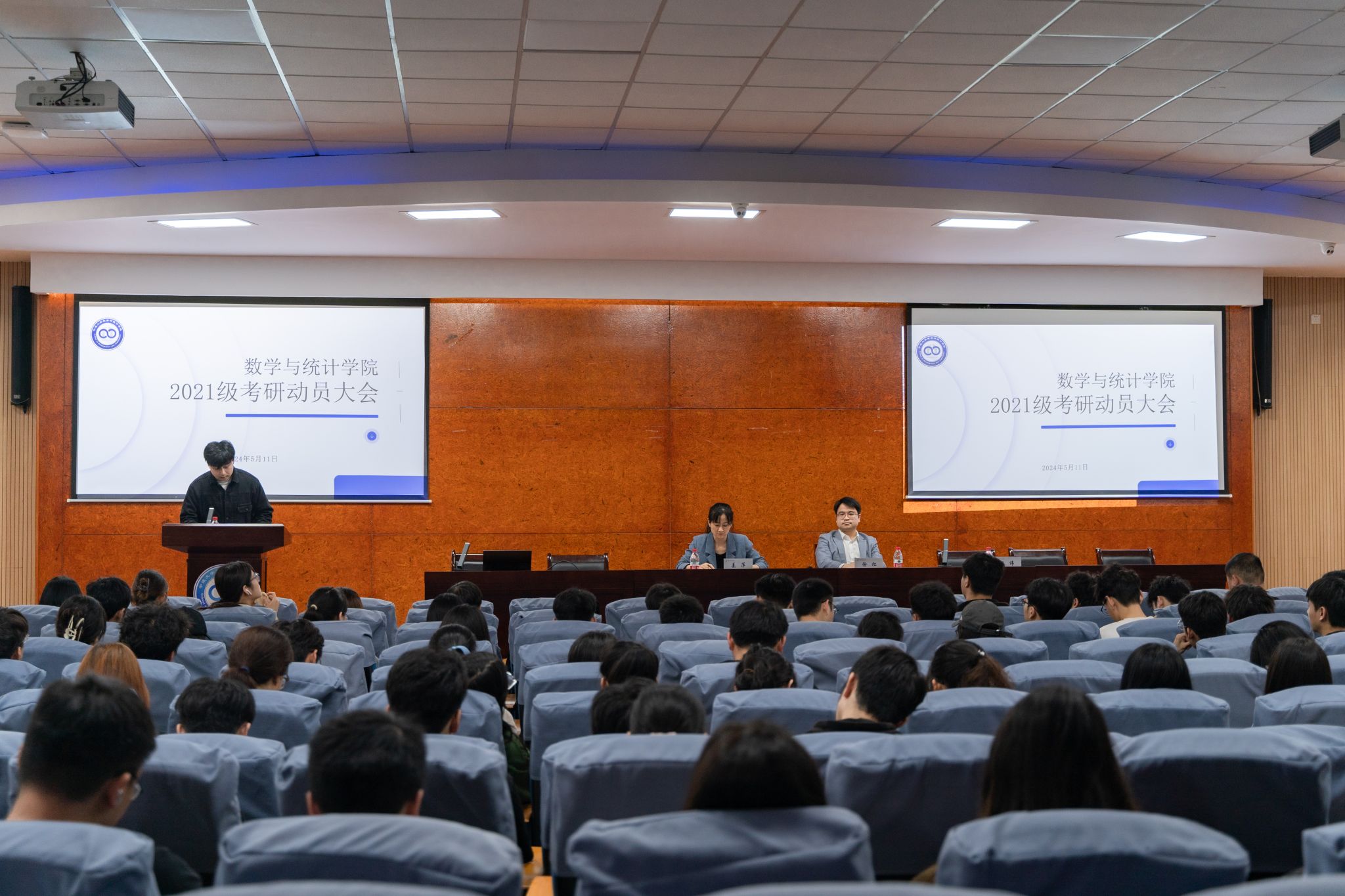 党委副书记姜萍、副院长徐松、精算中心主任王伟、团委书记孔家辉出席会议,2021级全体本科生参加本次大会。