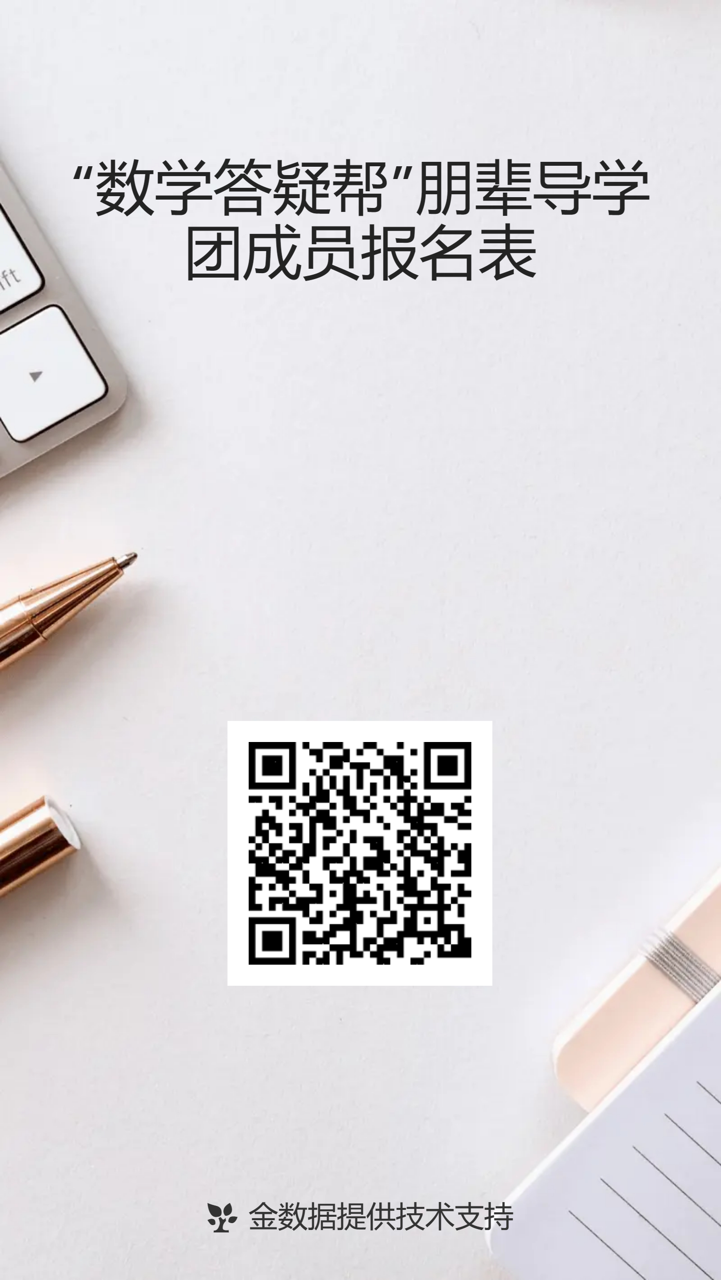 请各个支部党员同志根据自身学习情况积极扫码报名,相关服务经历作为党员培养教育过程中的重要考察内容以及党内评奖评优的重要参考依据。一经录用,将颁发“数学答疑帮”朋辈导学团成员聘书。报名截止时间为2023年12月3日18:00前。