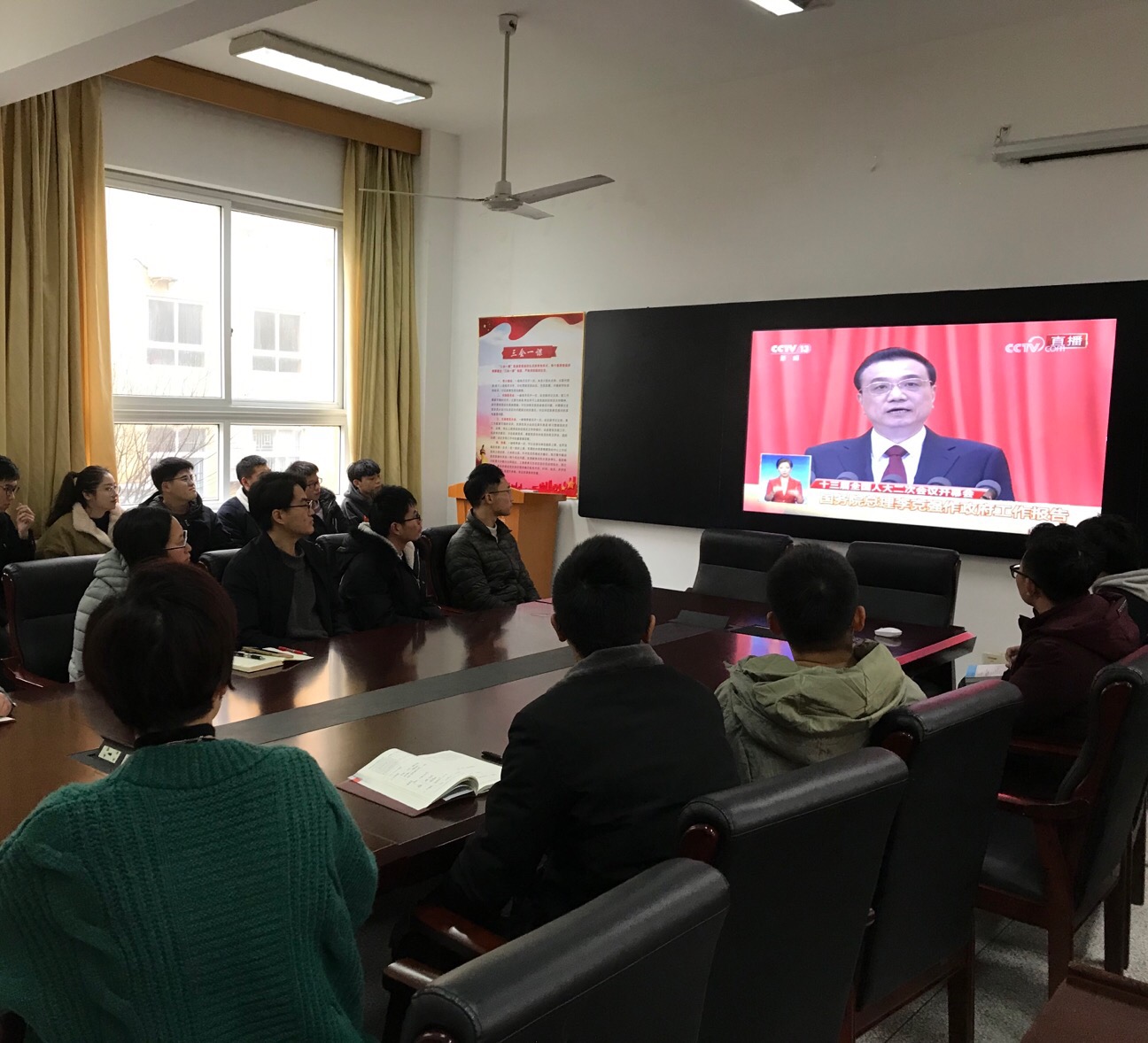 组织师生纷纷通过电视、广播、微博、微信、手机客户端等,收听收看两会开幕盛况,认真收听学习国务院总理李克强同志关于政府工作的报告。