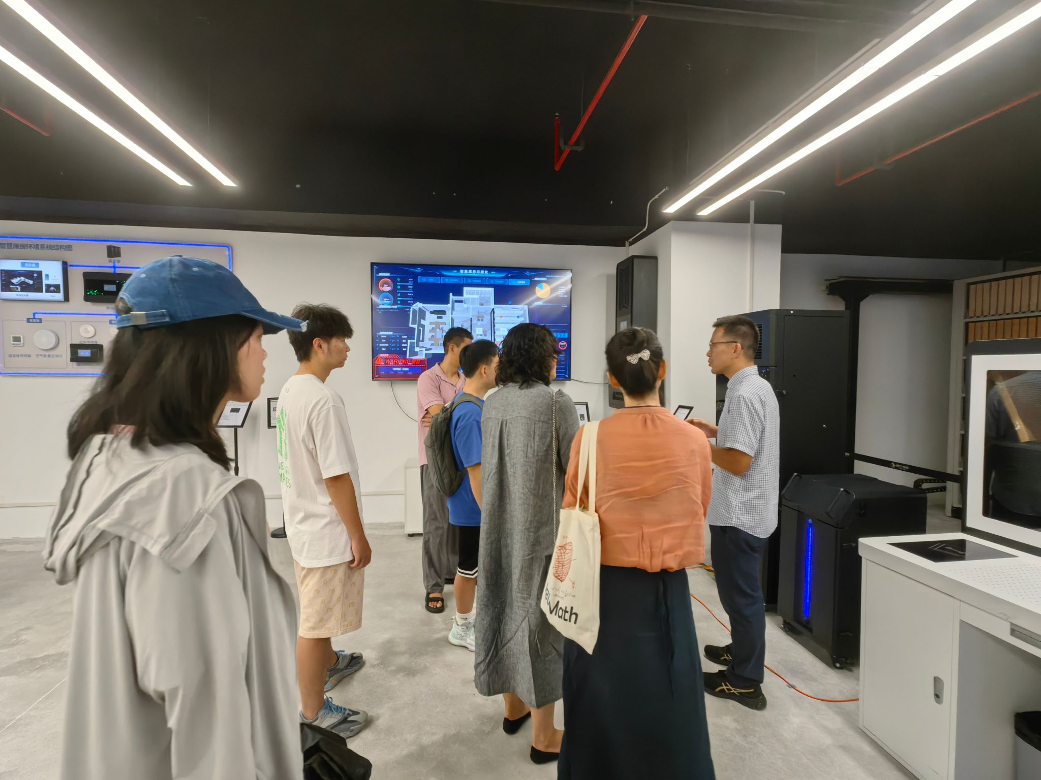 一行参观了公司展厅,介绍了智能盘点车、自助借还机等档案馆和图书馆常用的智能设备。同时,也展示了适用于公检法机构的档案交接柜以及智能文件柜等,向师生一行演示了公司研发的智能电动密集架和无人档案库房管理系统,展示了智慧库房的巧思与便捷。在后续的交流中,校友向师生一行讲述了他的创业感悟,谈及数学作为底层逻辑在工作中的重要性。