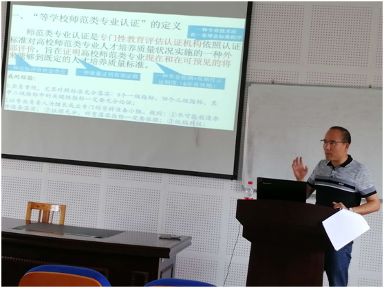 6月19日,龙赛理科楼311报告厅座无虚席,近40名师范专业和督评中心的老师认真听取了符水波老师关于师范专业认证工作现场考察要点经验分享的报告。