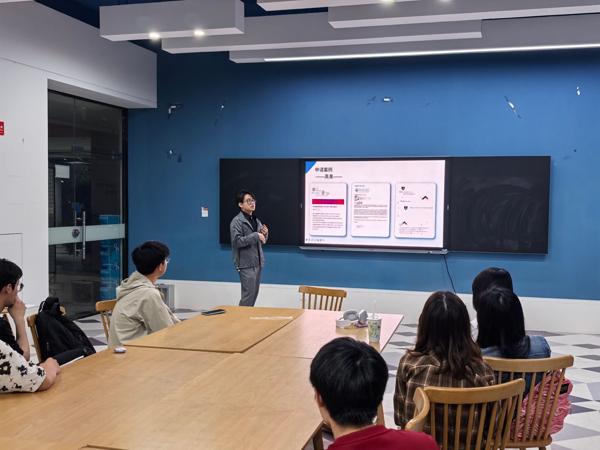 邀请2024届创业校友陆宇力返校开展主题为“留学申请趋势解读与规划分享”的交流会。来自精算、金融工程、数学与应用数学等专业的各年级本科生积极参与交流。