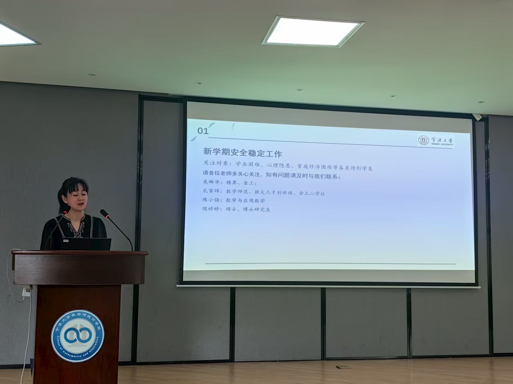 本科教学质量、提高人才培养质量。在解读李伟平副校长《关于新形势下本科人才培养的工作思考》的专题报告时,她聚焦报告中总结的十大问题,要求老师们也要结合实际工作自查自省,是否存在类似问题并查找问题根源。她指出,这些问题关乎师德师风,影响教风学风。接着她进一步强调了师德师风建设的重要性,要求全体教师在实践中要坚定“为党育人、为国育才”的初心,恪守“严谨治学、追求真理”的学术道德,践行“有教无类、润物无声”的教育情怀,做一名合格的人民教师。最后,霍妍从意识形态领域、安全生产领域、交通安全领域、极端事件防范领域、自然灾害应对领域等多方面对校园安全稳定工作进行了强调。