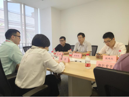 一行先参观了文创港规划沙盘模型并实地走访了文创港已落成的主体建筑。随后的校企合作座谈会上,双方就“数字化众创空间”、数字经济等校企合作领域展开了深入探讨。数学PG官方直营网