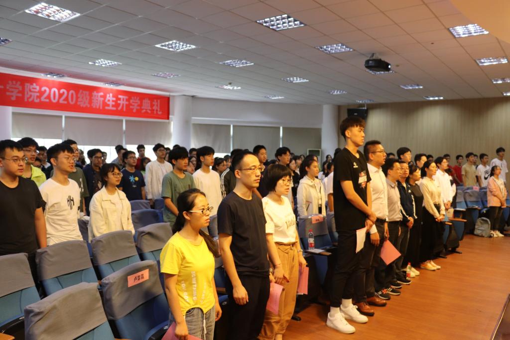 领导、各系主任、新生班主任以及2019级分流新生和2020级新生200余人参加,并邀请到2000级数学系校友沈锋与宁大男篮球员韩存昊作为特邀嘉宾出席本次开学典礼。