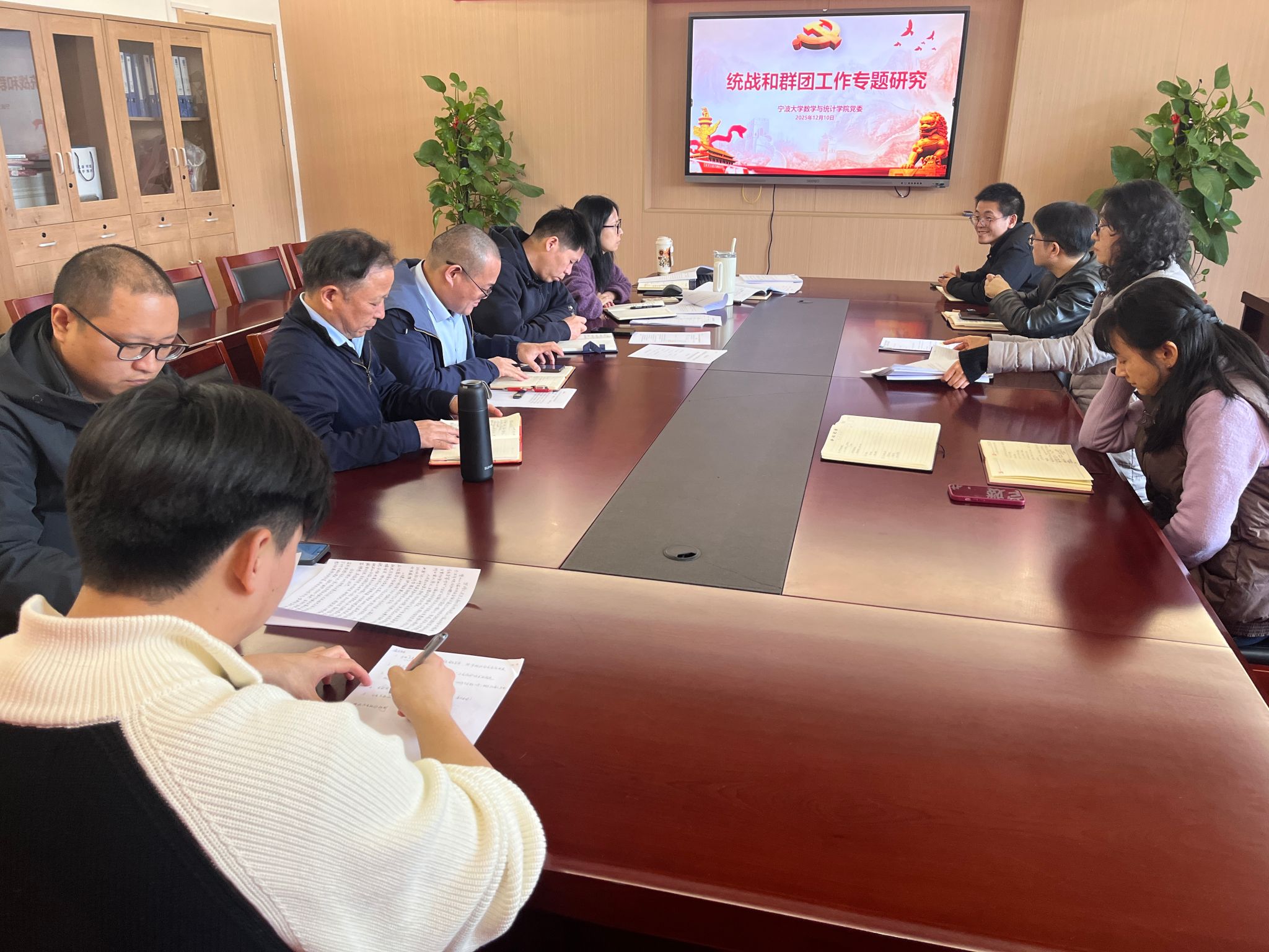会议首先由院党委书记领学习近平总书记相关重要论述。随后,分工会主席与分团委书记分别汇报了2025年工作进展与下一年度工作计划。理论学习中心组成员结合学习内容与群团、统战工作实际,开展了深入交流研讨。