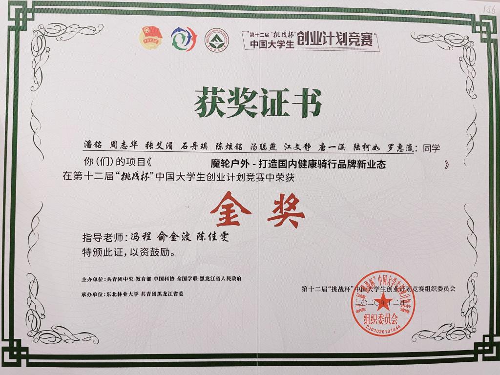 由院冯程老师、俞金波老师、陈佳雯老师指导的“魔轮户外——打造国内健康骑行品牌新业态”项目荣获金奖,取得了这个赛事的PG官方直营网