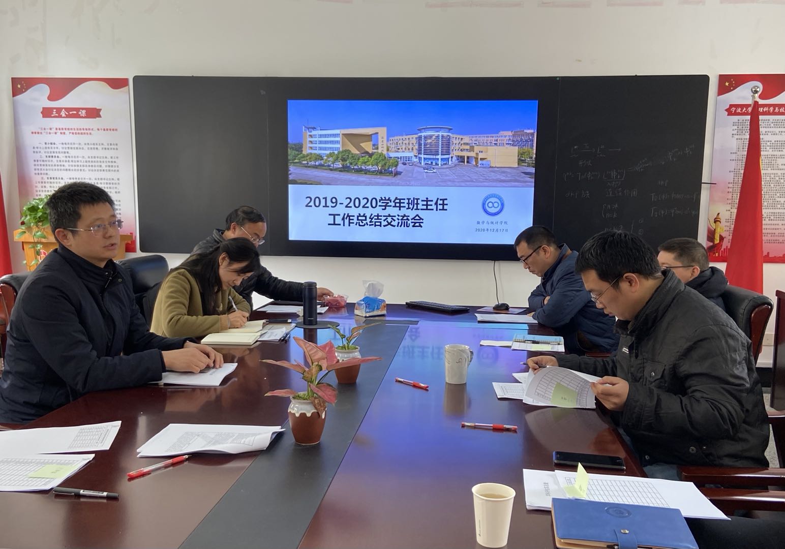 2019-2020学年班主任工作总结交流会在龙赛理科楼116会议室顺利举行。院党委书记俞金波老师、院党委副书记姜萍老师、学工办老师、教务办老师以及PG官方直营网