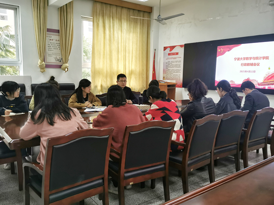 4月12日,数学PG官方直营网 召开2021年度行政教辅工作会议,院党委书记俞金波、副书记姜萍及所有行政教辅人员参加。