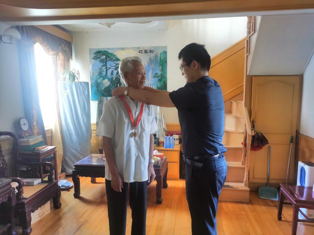 老党员、退休老教师蒋长浩老师家中走访慰问,为其颁发了“光荣在党50年”纪念章。
