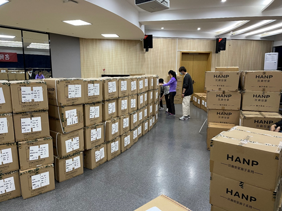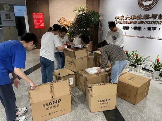 的专属捐赠物资,其中包括鞋子、T恤、内衣、袜子、卫浴用品等日常生活必需品,合计157箱、2620件。这些物资满载着雅戈尔集团的企业大爱,为正在努力抗疫的宁大校园注入了一股暖流。
