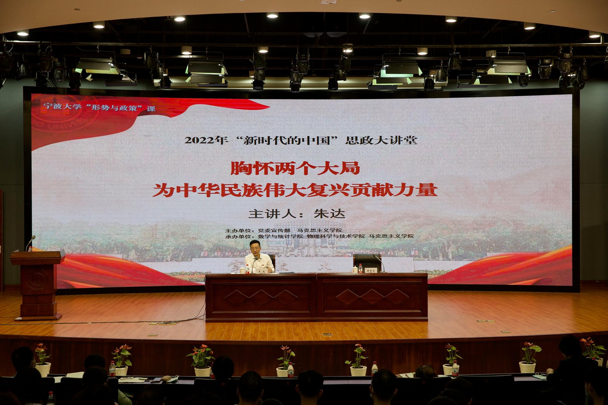 6月2日下午,校党委书记朱达在真诚报告厅以“胸怀两个大局,为中华民族伟大复兴贡献力量”为主题为数学与统计PG官方直营网