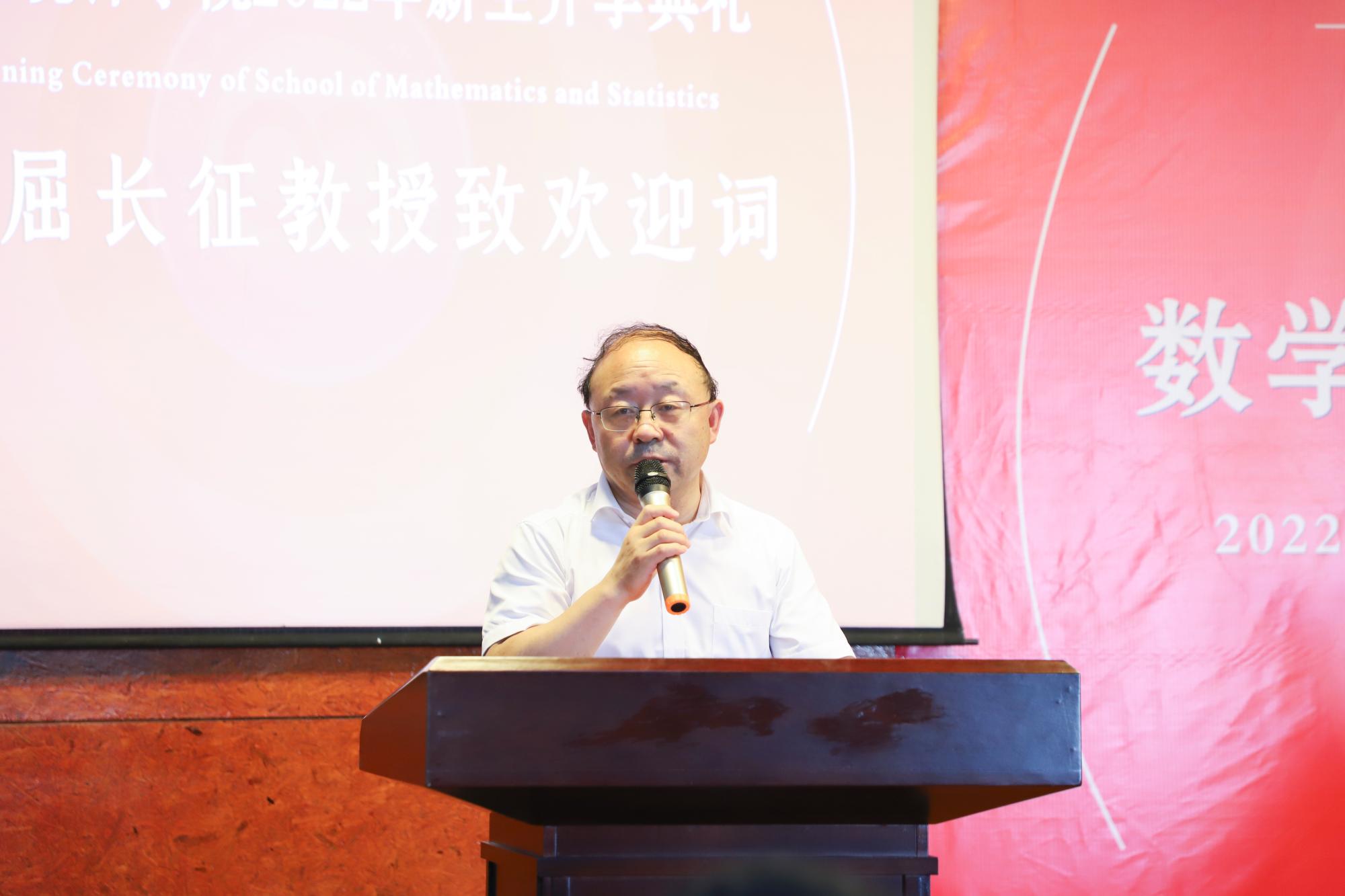 最后,院长屈长征教授发表讲话。首先,他表达了对数院306名新生的欢迎以及美好祝愿。接下来,他介绍了数院雄厚的师资力量以及取得的优异成绩,同时他也希望同学们能够脚踏实地,学会如何学习和思考,及时做好人生规划,积极锻炼身体,在PG官方直营网