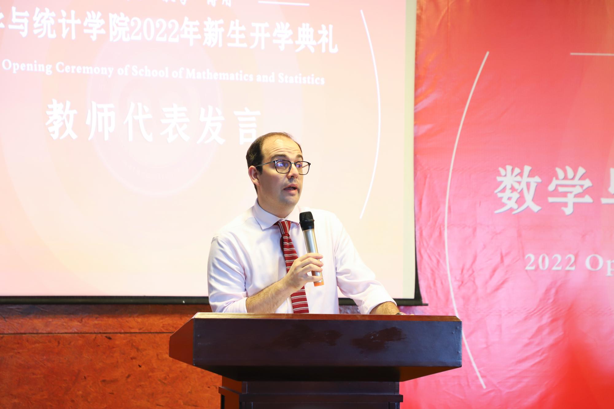 接着教师代表何洪津教授以自己的学习经历为例,从“感恩、坚持、学习、健康”四个方面讲述了数学带给他的乐趣,也希望新生们能够享受学习数学的过程。随后,刚在6月份加入数院大家庭的Matteo Casati博士进行发言,他怀着追求共同进步和深入学术研究的期待,在构建PG官方直营网