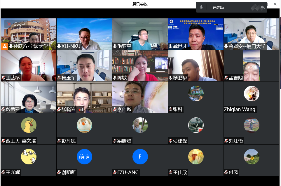 院士、国家自然科学基金杰出青年项目获得者、国家自然科学基金优秀青年项目获得者在内的120多位知名专家学者及研究生参加了此次线上会议。会议主要围绕结构图论、极值图论、代数图论、算法等领域展开交流讨论。