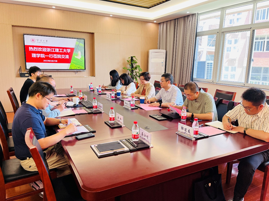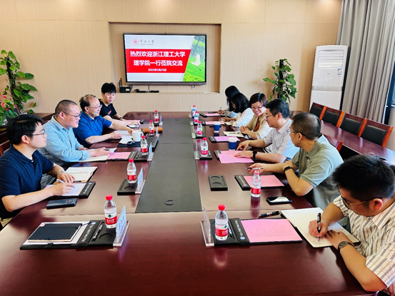 一行人的到来表示欢迎。双方分别就队伍建设、科学研究、专业建设、本科生及研究生培养的宝贵经验进行交流学习,同时就数学学科建设面临的困难,如如何拓宽横向项目等问题进行深入探讨。