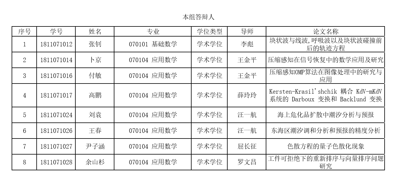 PG官方直营网 2021届夏季数学与统计PG官方直营网 硕士学位论文答辩公告