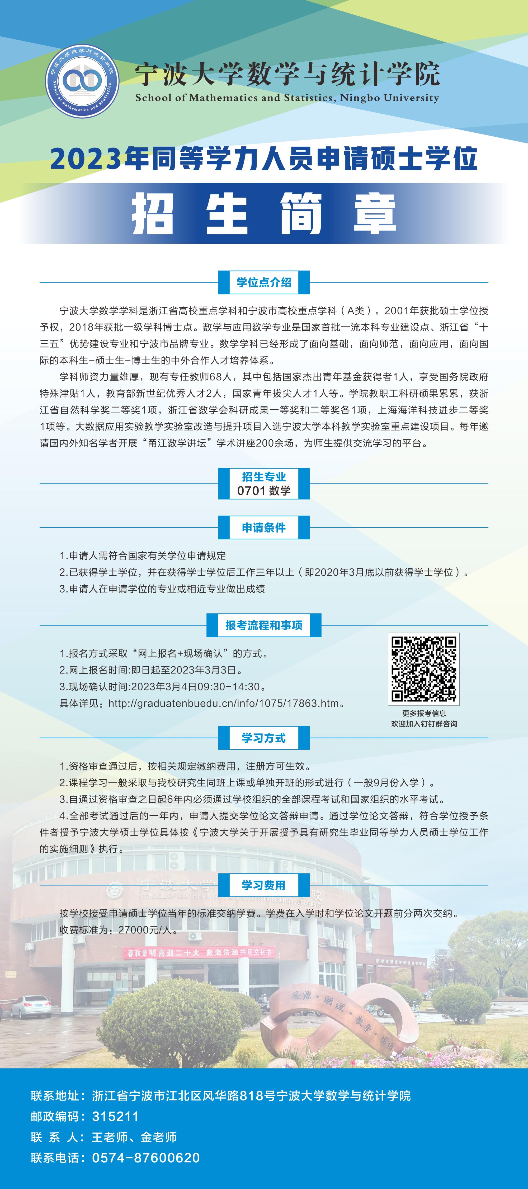【PG官方直营网 通知】PG官方直营网 数学与统计PG官方直营网 2023年同等学力人员申请硕士学位招生简章