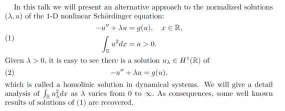 报告题目:Normalized solutions of the 1-D nonlinear Schordinger equation