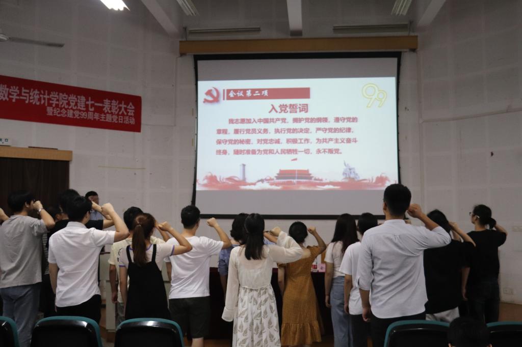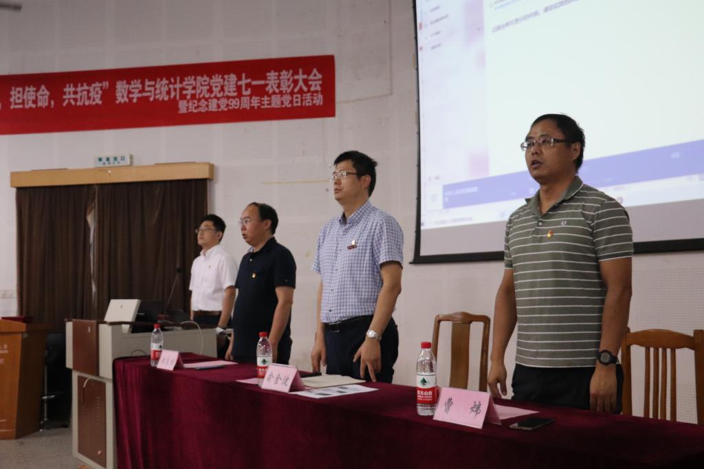 7月1日上午10时,数学与统计PG官方直营网 “七一”表彰大会暨纪念建党99周年主题党日活动在龙赛理科楼报告厅隆重召开。党委书记俞金波、副院长曹炜、副院长胡良根出席会议。大会由党委委员、团委书记张宾主持。