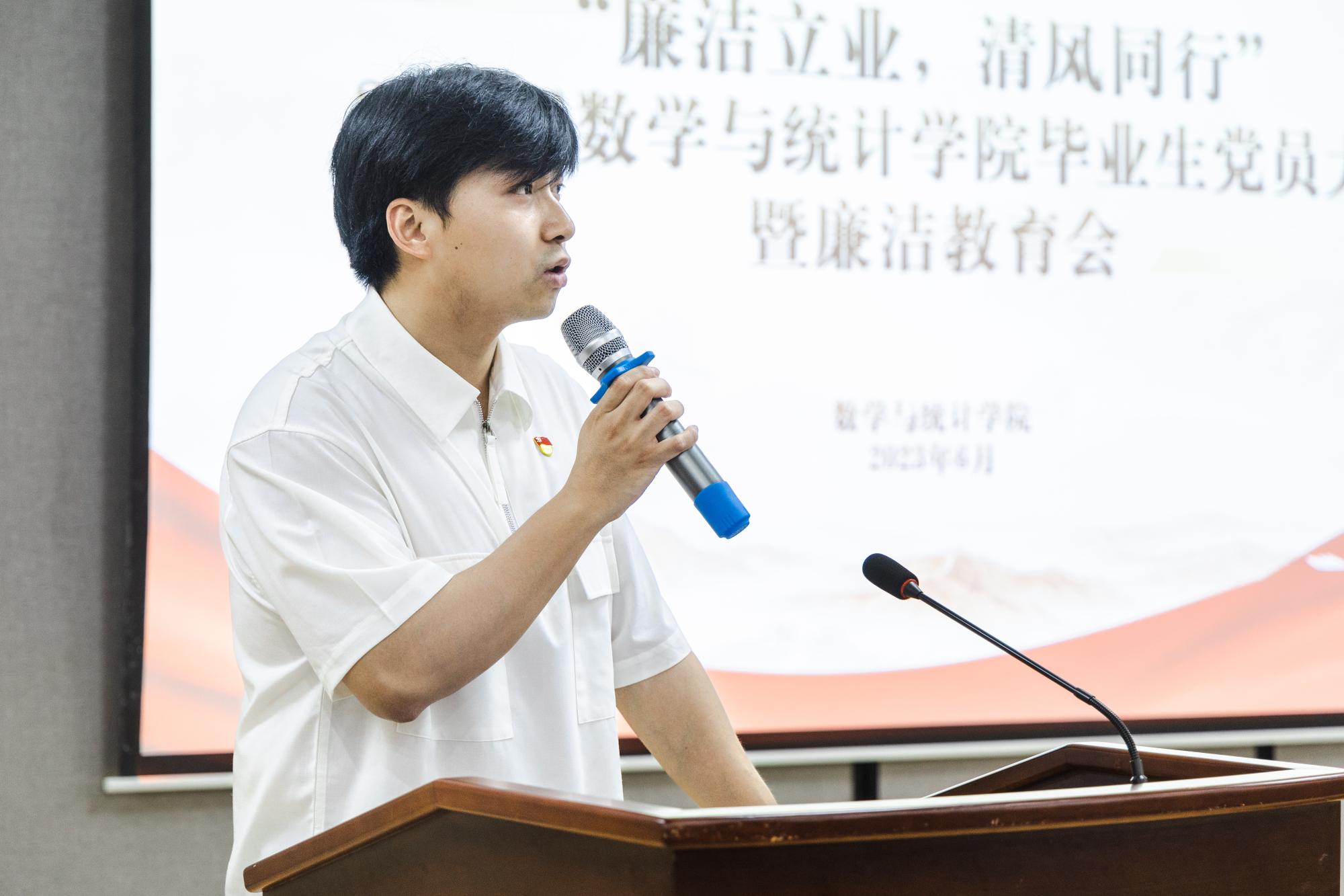 为深入开展学习贯彻习近平新时代中国特色社会主义思想主题教育,扎实推进廉洁文化建设,进一步强化毕业生党员意识、提升毕业生党员廉洁意识,扣好“人生的第一粒扣子”,6月19日,数学与统计PG官方直营网 开展了“廉洁立业 清风同行”2023届数学与统计PG官方直营网 毕业生党员大会暨廉洁教育会。